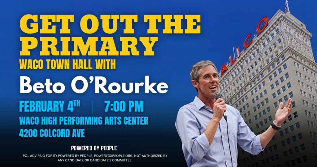Waco, Tx — Beto O’Rourke spoke to a large audience Tuesday evening in Waco, offering an inspiring and informative address on civic engagement followed by a question-and-answer session.