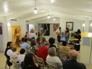 Among the diverse offerings of the Art Forum is a monthly open mic, “Nuestra Voz”—Our Voice, co-hosted by Sanger Heights community leader Fernando Arroyo and your columnist truly, me! Every second Saturday evening around 6:45pm people gather–elders and youngers, poets and musicians, people across all cultures, genders, beliefs, abilities, practices, and experiences–to share poems, songs, stories, reflections—bits of ourselves, with each other. We build community together. We co-create art works and nourish inspiration.