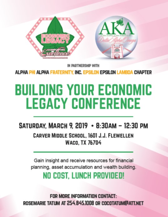 Delta Alpha Omega Chapter believes that this conference will truly benefit the Waco Community by allowing community members to select topics that are important to their financial success and learn how to be strategic in planning.   “There is no better time than now to start planning for tomorrow,” says Rosemarie Tatum.