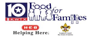 The Longhorn Council, Boy Scouts of America, H.E.B. Grocery Company and KWTX News 10 sponsor Food For Families annually the week before Thanksgiving, that way food pantries throughout Central Texas have plenty of food to offer the people during the holiday. In McLennan County, Caritas of Waco helps facilitate volunteer and donation services, making sure there are enough people on Nov. 22 to help collect the food items that were donated. The staff of Caritas also prepares their warehouse to receive a large influx of donations.