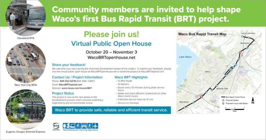 For more information about the Waco BRT project, visit the project website at waco-texas.com/transit/BRT.