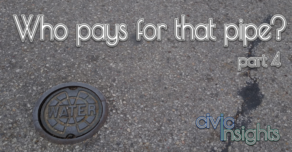 Combining all the allowable costs together, the report then applies the same 50% credit to the costs that we discussed with pipes. At the end of this process we have the total eligible impact fee cost – the total cost of increased capacity due to new demand after consideration of a credit for future taxes for each service area.