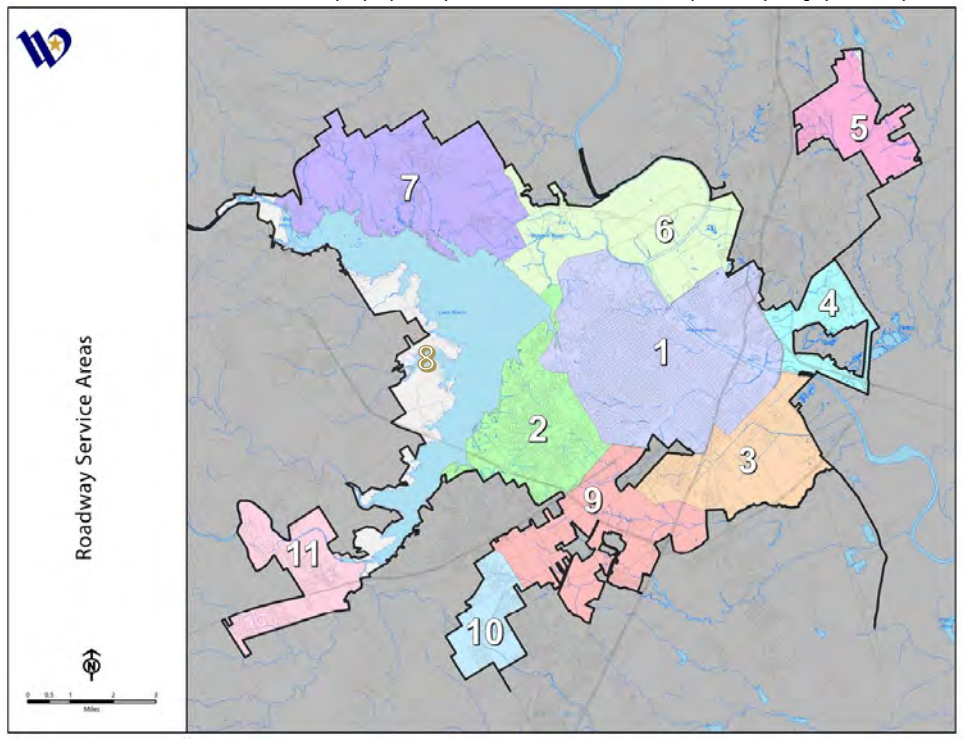 As you may recall from two weeks ago, service areas are the geographic boundaries of the impact fee policy. Chapter 395 provides guidance on what these areas can be or must be. For roads, there is a unique limitation that is not applied to pipes. Service areas for roads are limited to about twelve miles across (technically a six-mile radius). The reasoning here is that one part of town should not have to pay for the roads of a different part of town. For pipes the network is considered as a united system, whereas with roads smaller service areas are required. Additionally, a service area for roads cannot extend beyond the city limits (excluding the Extra-Terratorial Jurisdiction).