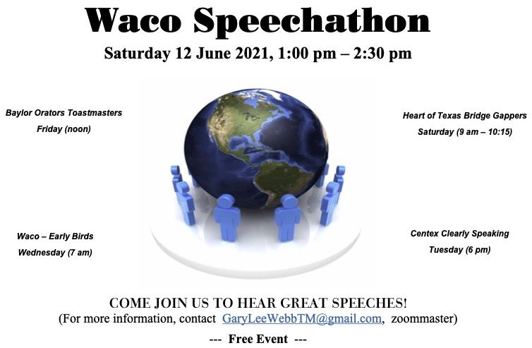 I have been in Waco 21 years. Before that, I had never heard about Toastmasters International; although, I did participate in some speaking organizations back in high school (Model UN while in California and the Arizona Model Legislature) and thought I was a great speaker.