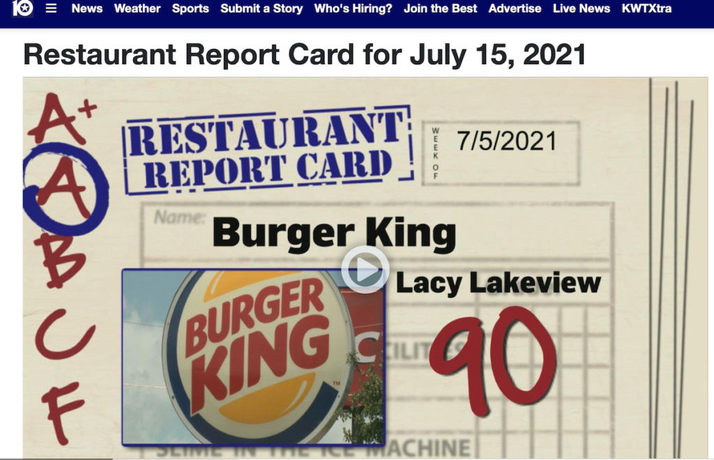 The channel 10 report highlighted two Greater Waco scores of 90. Yikes! And the losers are: Burger King #3714 at 103 East Loop 340 in Lacy Lakeview and Cracker Barrel #166 at 4275 North IH-35 in Lacy Lakeview.