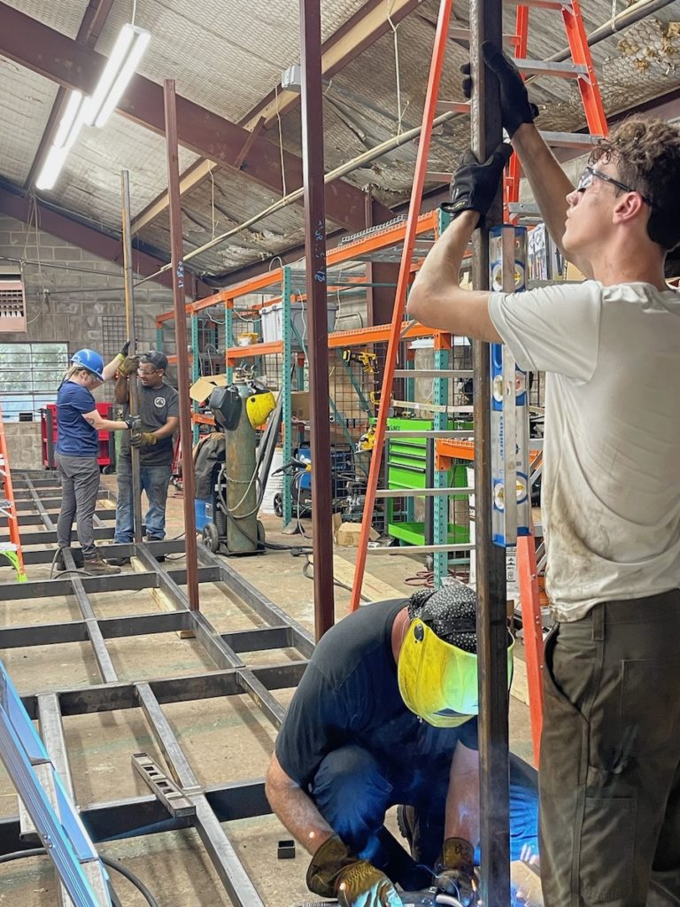 Triple Win was awarded a Summer Career and Technical Education Grant, $30,000 of which was designated to Waco Axe as a project of value. Triple Win recruited an amazing team of students from Rapoport Academy including Azel Rodriguez, Mikayla Lee, Haven Roanke, Harris Cook, Devin Weaver, Caden Sullivan, and Rafi Pena. These students earned their OSHA 30 certifications and gained invaluable experience in welding, metalworking, computer-aided design (CAD), and soft skills like communicating with their employer. Not only do the students get to put together a cool project with their friends, they also see how their hard work directly impacts a local small business.