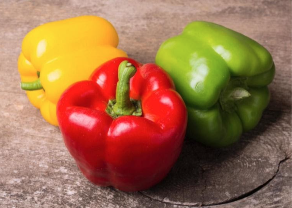 Bell peppers are a great source of Vitamin C, which keeps our immune system strong and helps our bodies heal quickly. Red bell peppers are higher in both Vitamin C and A compared to green bell peppers. Additionally, bell peppers are fat free, saturated-fat free, sodium free, cholesterol free, and low in calories.