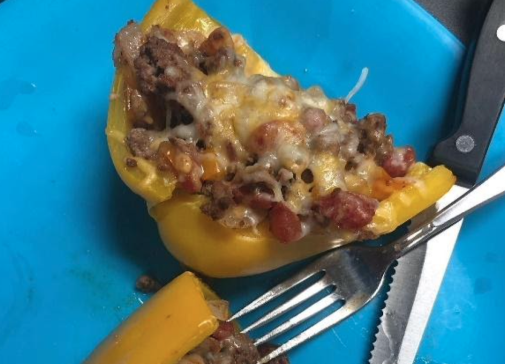 - Stuffed: Stuff with whatever you have available at home. A mixture of beans/meat, brown rice/grains, veggies, and spices can go such a long way and has endless combinations. Stuff the pepper and bake!